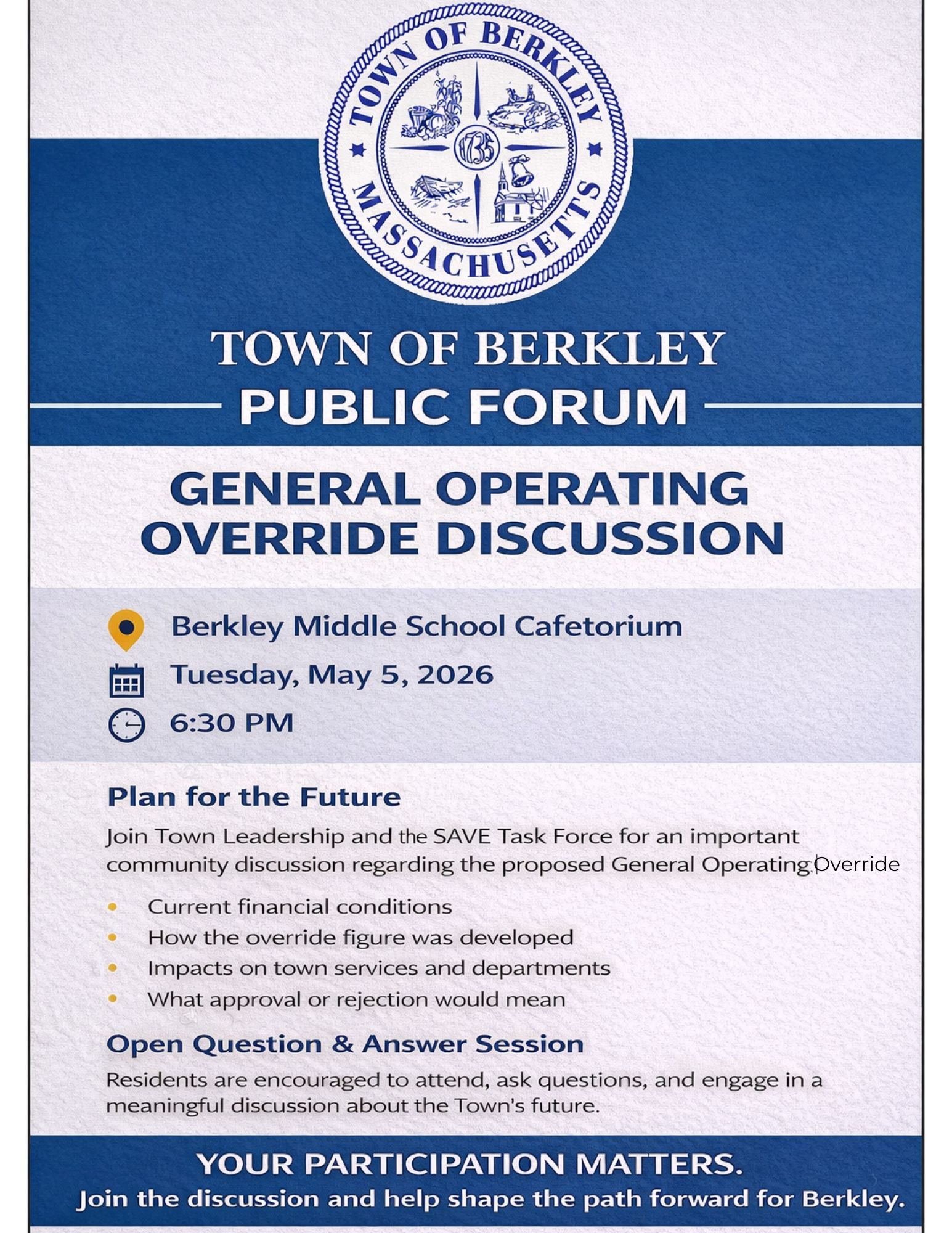 The Town will be hosting a public forum to review these updates, walk through the revised calculator, and answer questions: